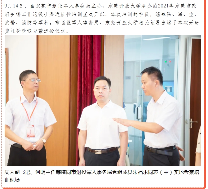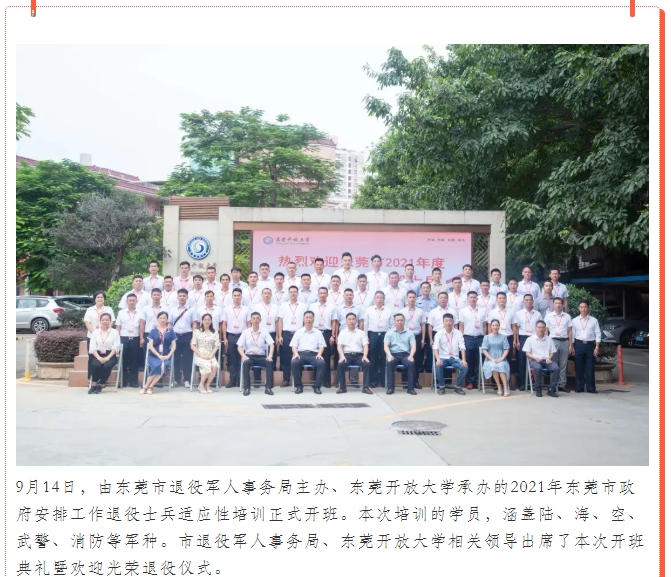 2021年东莞市政府安排工作退役士兵适应性培训顺利开班