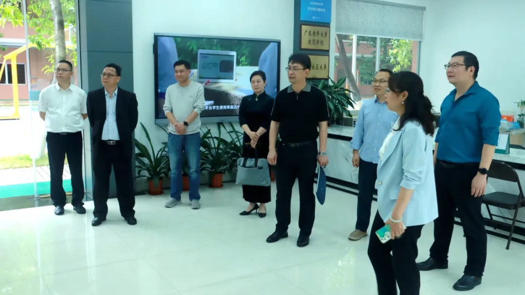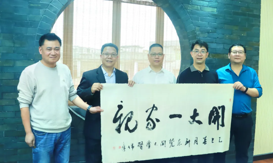 调研伊始,黄国忠书记一行实地参观了我校校园文化长廊、学生活动中心、直播中心、微课室、录播室及美术教育中心等教育教学场所。深入了解了我校在校园文化、教学模式创新、信息化建设及学生服务优化等方面的相关做法。在美术教育中心,台山开放大学甄伟章副书记现场挥毫泼墨,写下“开放大学一家亲”。笔锋之间,不仅体现了深厚的书法功底,更承载着两所学校携手共进的美好愿景,将交流活动的氛围推向高潮。