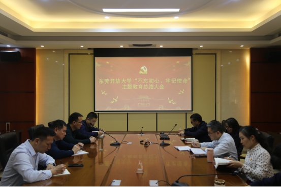 1月10日下午,东莞开放大学党总支组织全体在职党员召开“不忘初心、牢记使命”主题教育总结大会,校党总支书记阳涌同志作总结发言。