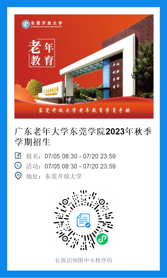 1、 现场报名:携带个人身份证和身份证复印件1张、1寸免冠彩色近照1张前往东莞开放大学招生服务大厅填写资料报名,