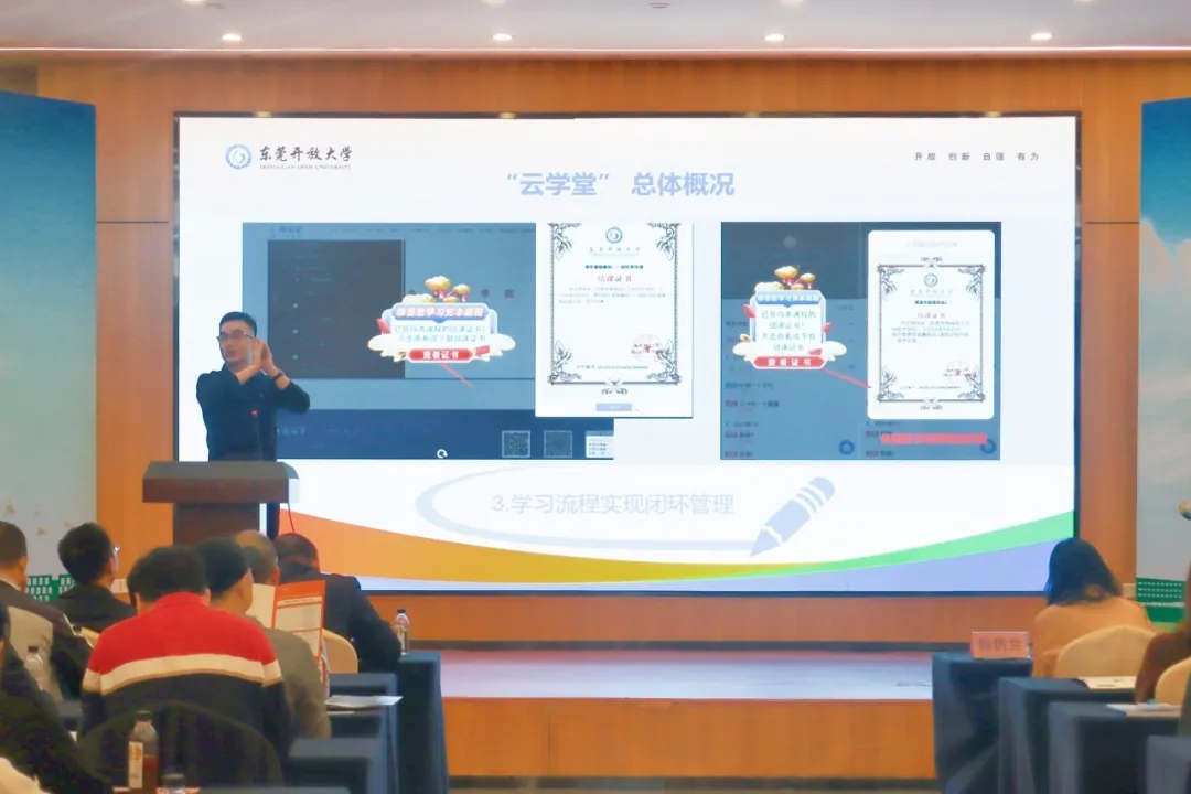 随后,东莞开放大学信息中心的周勇老师详细解读“云学堂”平台操作指南,对平台功能模块:在线课程、学习进度追踪、结课证书申请等逐一阐释。