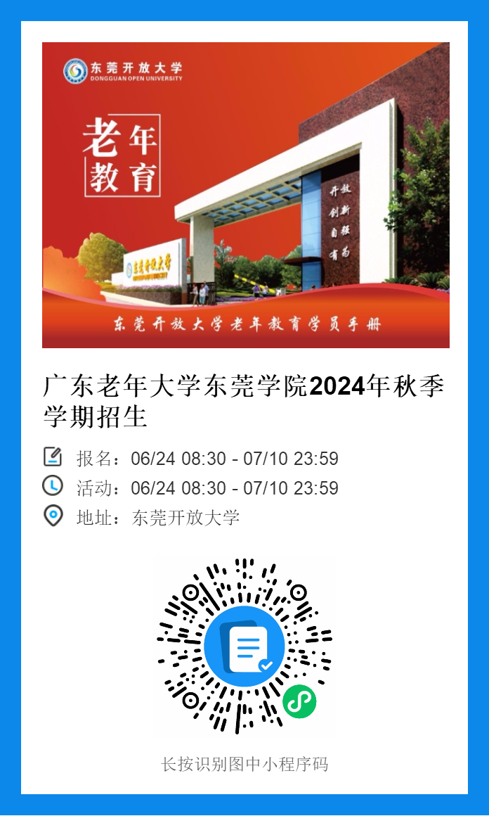 广东老年大学东莞学院2024年秋季招生开始正式报名啦!!!