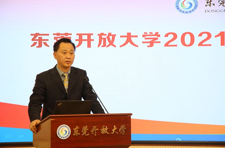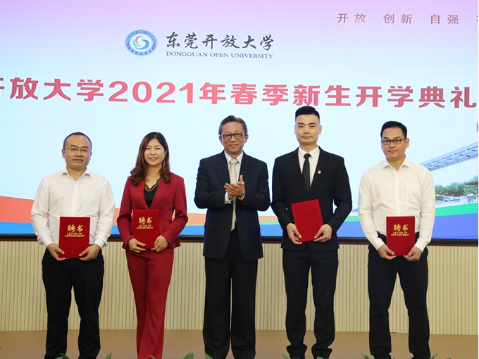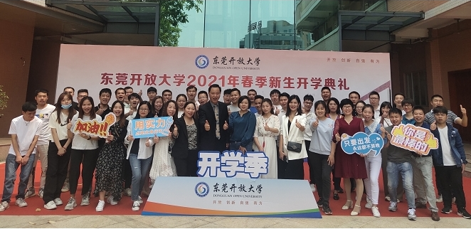 3月28日上午,东莞开放大学举行2021春新生开学典礼暨“学党史,争做时代新人”思政第一课。本次开学典礼采用视频直播的方式,校本部主会场330多名新生及遍布全市的27个镇街教学点(合作点)700余名新生同步参加开学典礼。