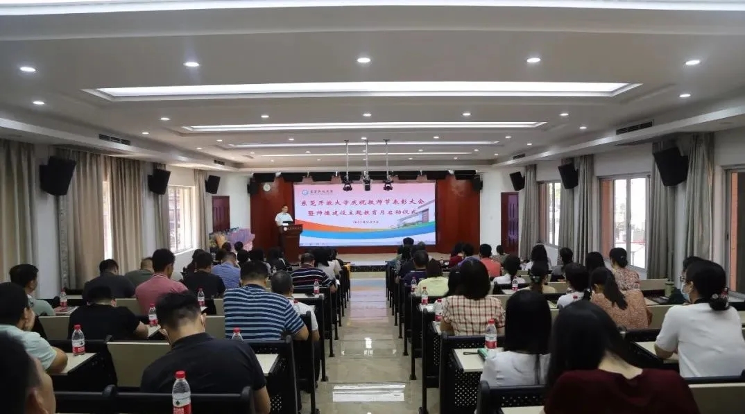 9月9日上午,东莞开放大学召开主题为“迎接党的二十大 培根铸魂育新人”的教师节表彰大会暨师德建设主题教育月启动仪式,热烈庆祝第38个教师节,部署2022年师德建设主题教育月活动,引导广大教职工进一步凝心聚力、勇立潮头、涵养高尚师德,为学校高质量落实立德树人根本任务作出新的更大贡献。大会由张念伟副校长主持。