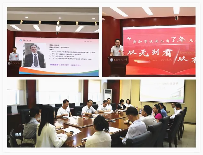 大会秉持公平公正、优中选优的原则,经竞选演讲、面试,层层考核,选举产生第五届学生会主席团。本届主席团共有4名成员,人员及分工如下:袁宇辉担任学生会主席,在学校党总支的领导下,学生工作部的指导下,全面负责学生会的工作;张婉如担任学生会副主席,负责学生会组织部的管理运营;钟宏华担任学生会副主席,负责学生会、社团的外联及宣传工作;黄晓霞担任秘书长,负责各个社团的管理运营。
