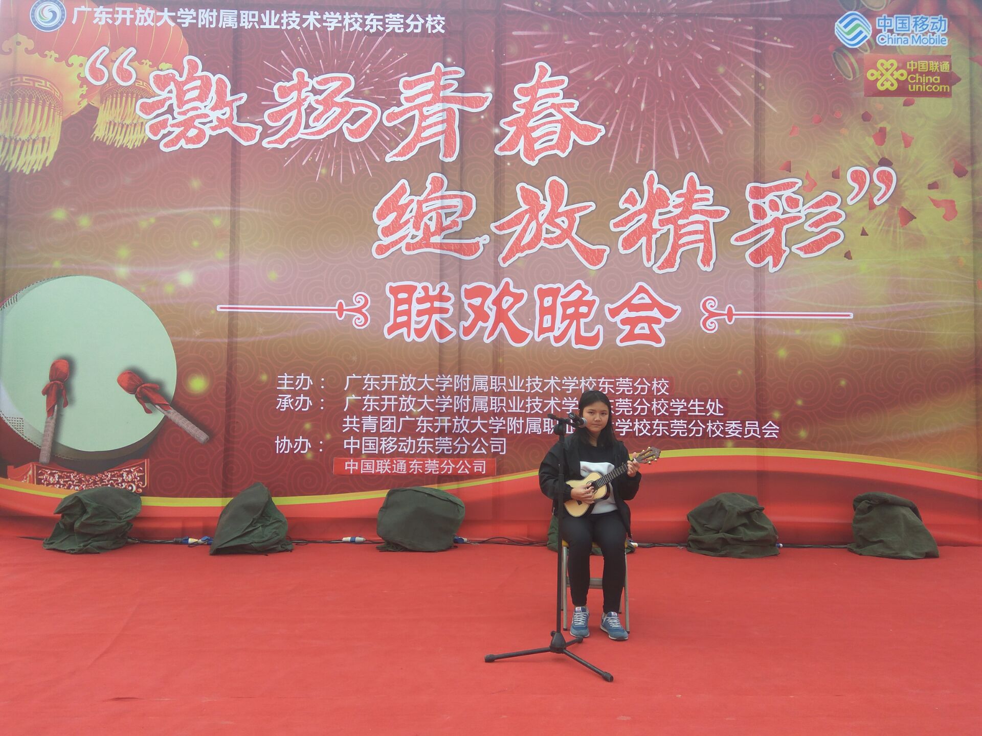 2016年12月29日广东开放大学附属职业技术学校东莞分校主题为“激扬青春,绽放精彩”的2017年元旦联欢晚会在学校操场隆重举行。