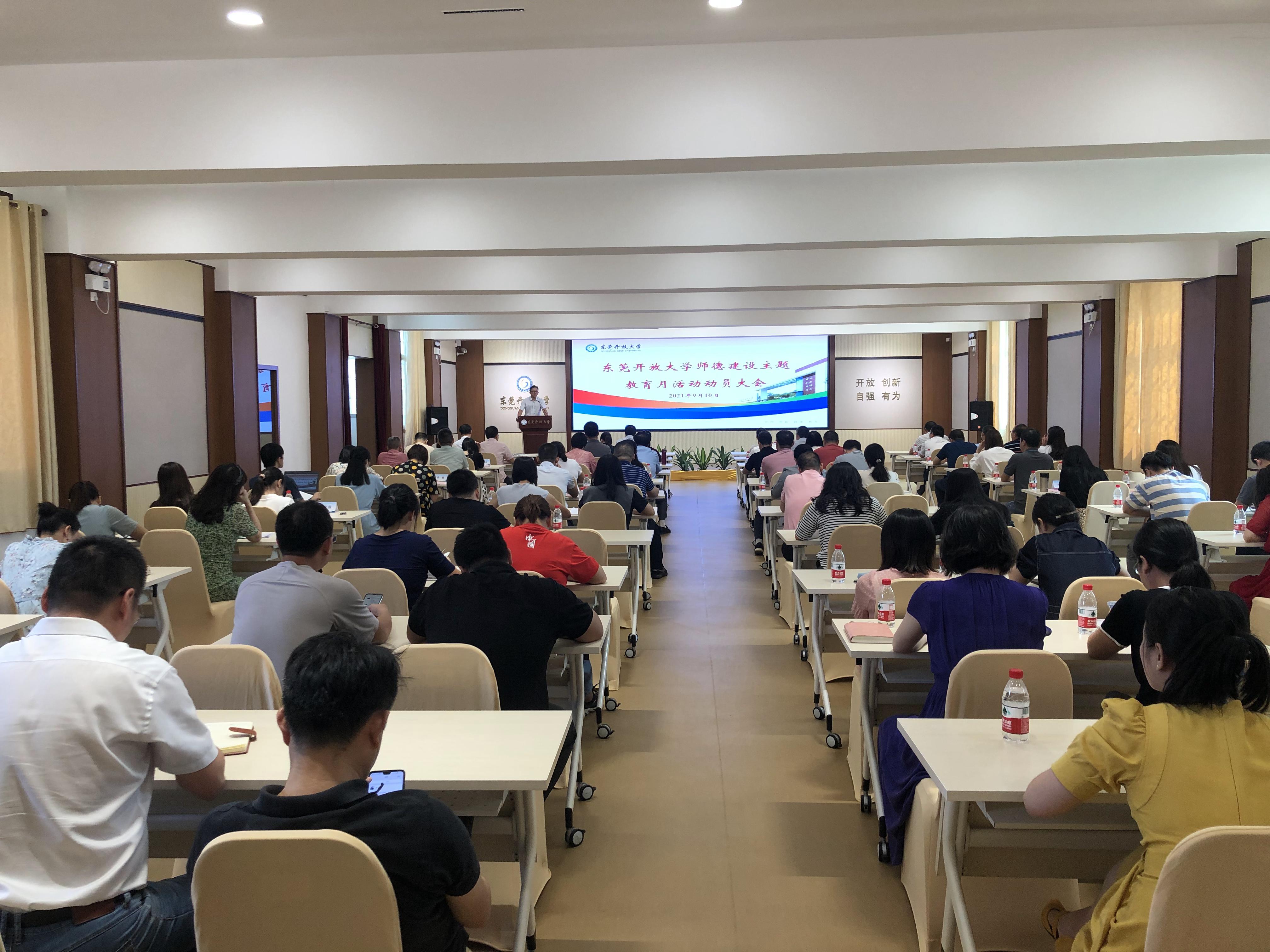 2021年9月10日,东莞开放大学召开全校教职工会议,就师德建设主题教育月活动作出部署。党总支书记、校长阳涌,副校长李树祥,党总支副书记周为,校务委员徐文龙等参加会议。会议由党总支副书记周为同志主持。