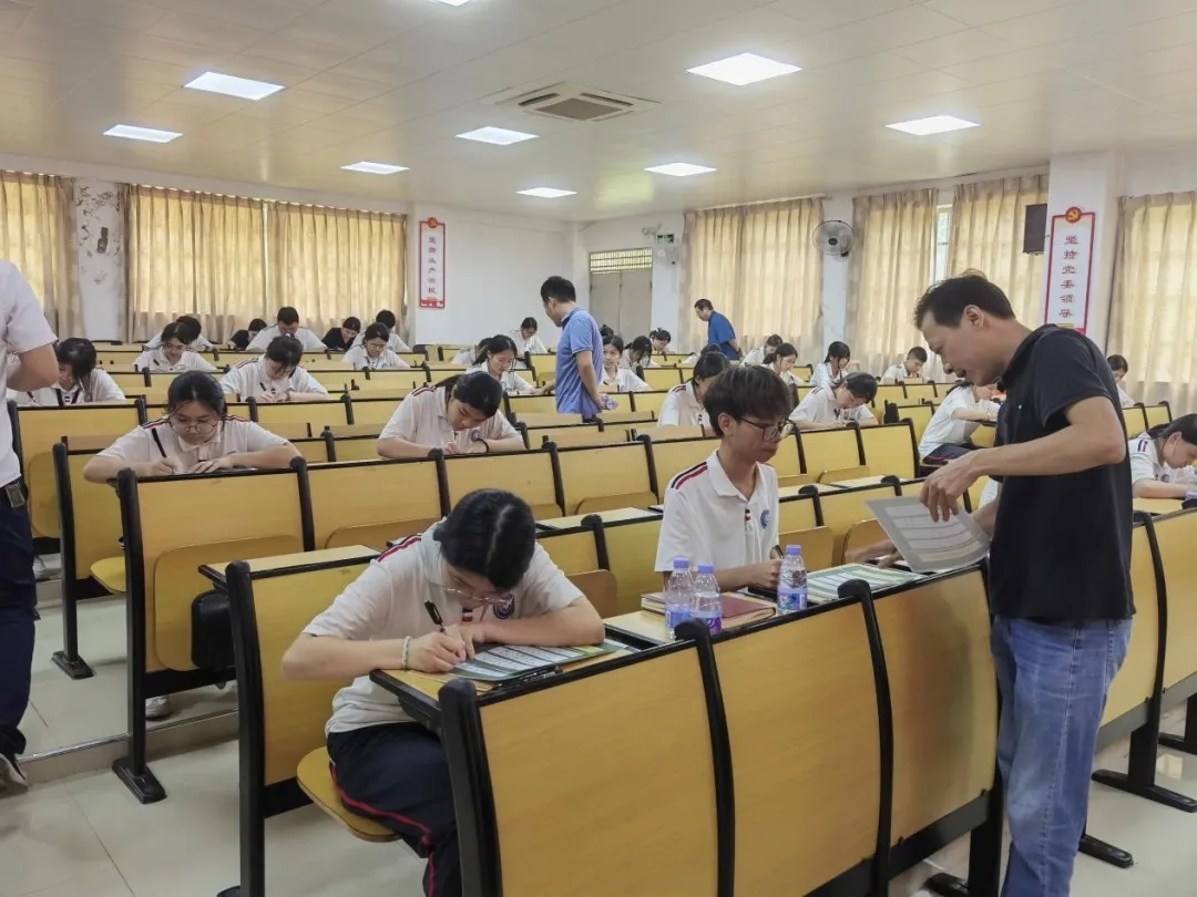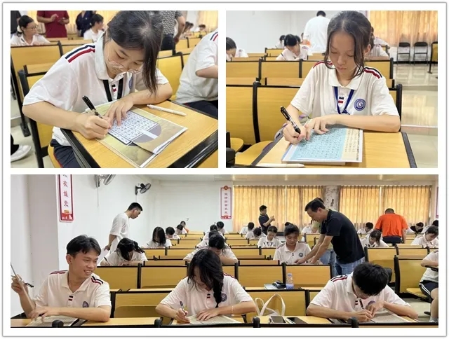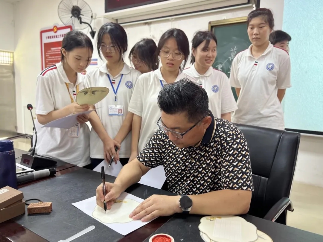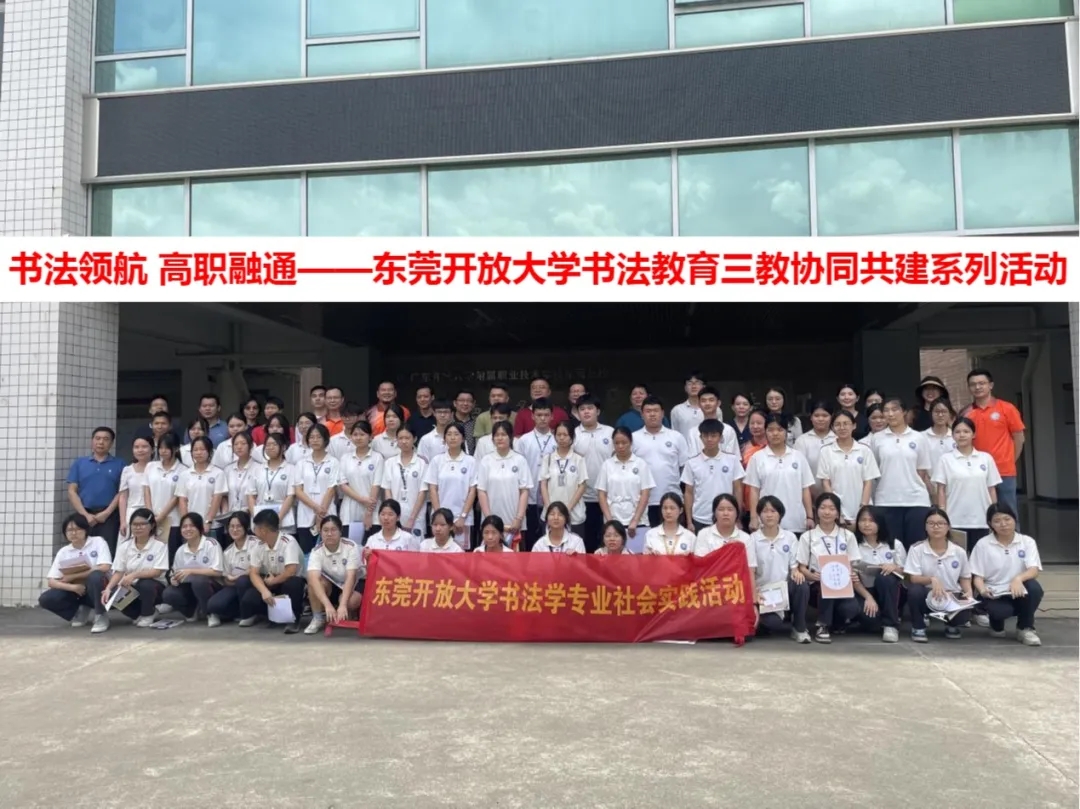 党的二十大报告提出“统筹职业教育、高等教育、继续教育协同创新”,东莞开放大学积极响应号召、践行三教融合发展,组织书法学生社团开展“书法课堂进中职”三教协同共建系统活动。2024年6月25日上午,活动第一站走进广东开放大学附属职业技术学校东莞分校,在中职学生中传播书法艺术、弘扬传统文化。东莞开放大学校务委员徐文龙、附属中职东莞分校校长冉令洲、美术教育中心主任喻涌波、东莞市硬笔书法协会副主席金熙俊出席本次活动,书法社团20多名骨干成员以及50多名中职学生参加活动。