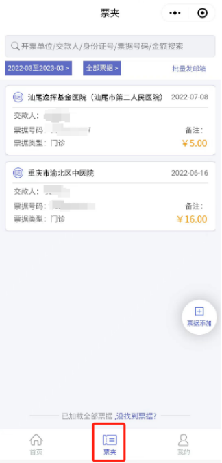 票夹页展示已保存至电子票夹(已归集)的票据,点击票据可查看该票据的详细信息。