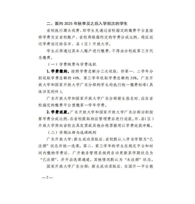 广东开放大学、国家开放大学学生学费缴费操作流程2.0