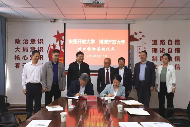 9月13日上午,东莞开放大学对口援助塔城开放大学签约仪式在塔城开放大学举行。东莞开放大学党总支书记、校长阳涌一行与塔城开放大学党委班子成员参加了签约仪式,仪式由塔城开放大学党委副书记、校长沈晓红主持。