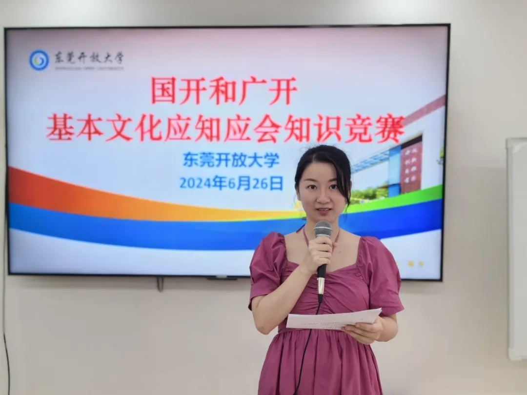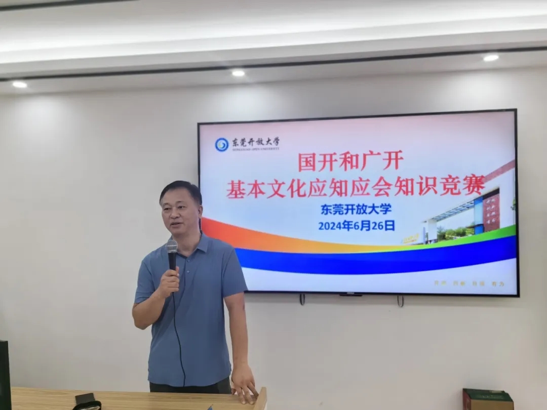 为迎接国家开放大学办学评估,提高教职工对国家开放大学办学定位与质量标准的认识,6月26日,东莞开放大学举办了“国开和广开基本文化应知应会知识竞赛”活动,由我校党总支副书记周为任评委,各部门选派代表参加竞赛活动,活动由朱迪思老师主持。